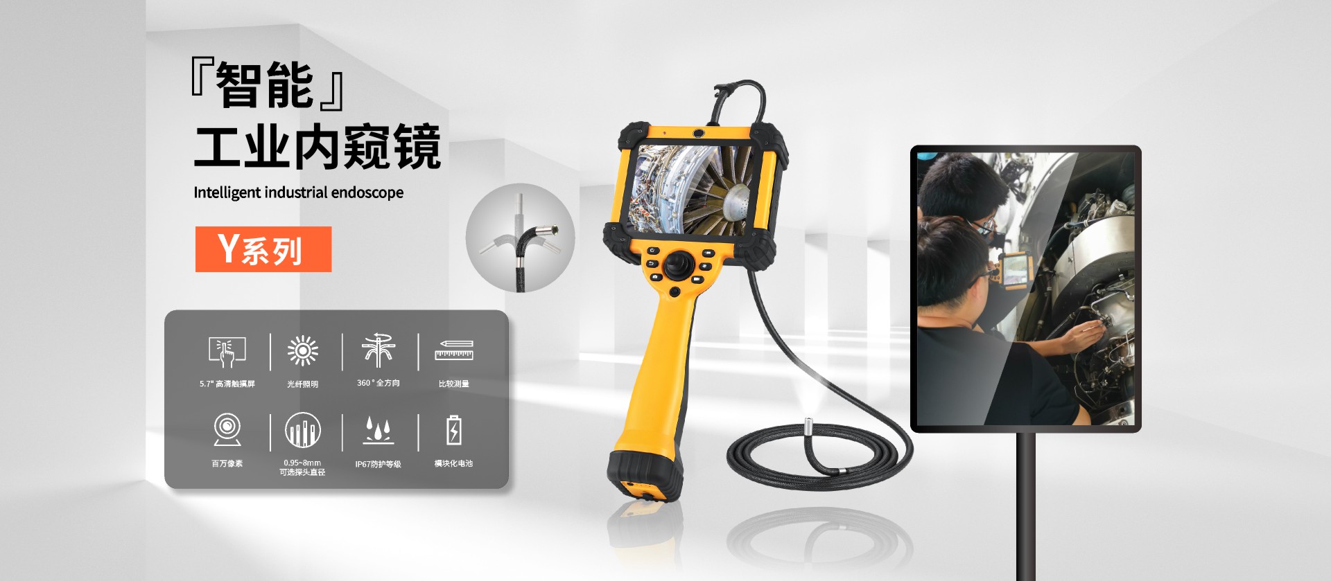 Y系列6mm直徑工業內窺鏡,搭載智能操控系統,6mm探頭直側一體雙鏡頭,后置LED光纖導光,照明更清晰,耐磨鎢絲管可360°全方位旋轉,航空制造業檢測專用,可檢測飛機活塞發動機氣缸內的積炭、燃燒室壁的橫截面以及門閥的情況,還可檢查渦輪發動機的渦輪葉片、噴嘴導流葉片,以及外來物損傷。
